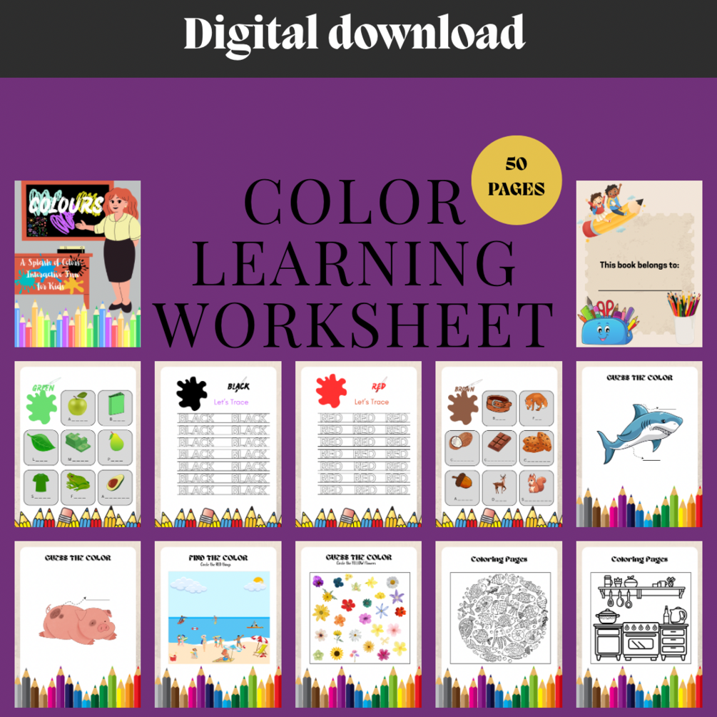 This Kids Colors Worksheet Pack is filled with playful, educational activities designed for preschool and kindergarten learners. Great for home learning, classroom use, or homeschool lessons.